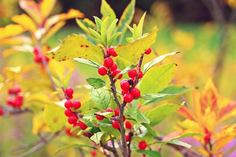 Keywords: fall seasons berries berry leaves red foliage natural seasonal park garden sun nature plant