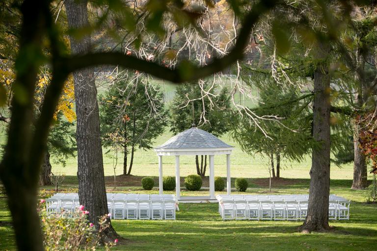 Keywords: fall wedding ceremony landscape chairs pavilion park outdoors decor