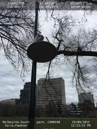 I was shocked to discover the faulty park lamp hanging precariously by a wire at Fawkner Park, South Yarra, Melbourne, VIC, Australia – “COM0590” ID number on sticker on lamp (see photo enclosed). Opposite 499 St Kilda rd.