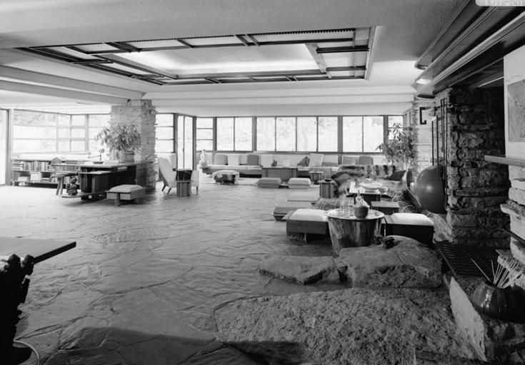| Keywords: Fallingwater - Living Room from Kitchen - HABS PA,26-OHPY.V,1-48.jpg w Fallingwater State Route 381 Stewart Township Ohiopyle vicinity Fayette County PA - Living Room from Kitchen Library of Congress Prints and Photographs Division Historic American Buildings Survey http //hdl loc gov/loc pnp/hhh pa1690 PA 26-OHPY V 1-48 February/March 1985 Jack E Boucher HABS staff photographer PA 26-OHPY V 1-48 hhh pa1690 Interior of Fallingwater Living rooms in the United States | ||||