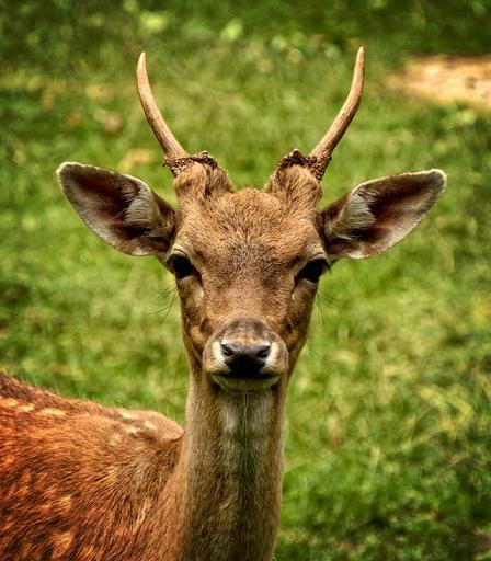 Keywords: fallow deer damtier dama dama female wild animal livestock horned face head ears ruminant
