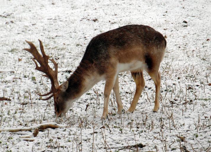 Keywords: fallow deer winter fur stains antler scoop graze wildlife park forestry hunting
