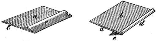 | Keywords: Fals ombøjet kant NC Rom pg428.png Fals - ombøjet kant - en lille skarp ombøjet Fals Det første og sidste Ark forsynes nu med et Forsatspapir enten hvidt Skrivepapir eller farvet Valsetrykpapir dersom Bogen skal være rigtig fin Man tager et halvt Ark og bøjer en Strimmel tilbage paa tværs af rigelig Arkenes Bredde saa Papiret ligger dobbelt venstre tegning a b Den Strimmel Papir som bliver tilovers afklippes ikke men lægges ind over det ombøjede Blad saa at Papiret fra den ene Side nu er trefoldet som a b c viser på venstre tegning hvor den sidst lagte Flig c ligger opad lidt aaben Man vender Papiret og giver det fra den modsatte Side en lille skarp ombøjet Fals paa ½ Tommes Bredde som d viser på højre tegning Bogen er nu i Stand til Heftning http //runeberg org/haandgb/0428 html Side 427 og 428 Book folding Falzen Papiertechnik http //runeberg org/haandgb/0428 html - Haandgerningsbog for Ungdommen 1894 Niels Christian Rom 1839-1919 All material is in the public domain by Projekt Runeberg at http //runeberg org/haandgb/ PD-old Bookbinding illustrations How to Bind a Book Haandgerningsbog 1894 by N C Rom Niels Christian Rom 1894 books |
