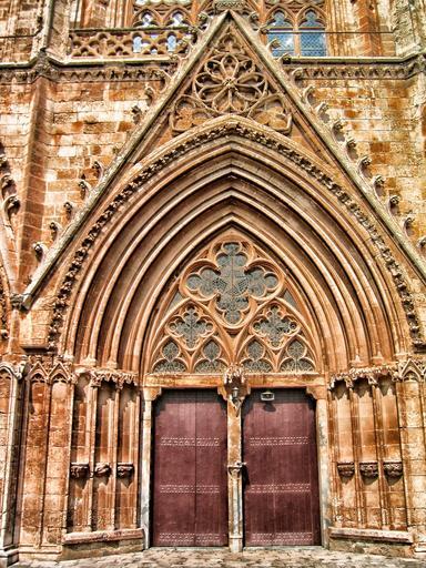 Keywords: famagusta cyprus church building door entrance doorway landmark historic architecture stone wood wooden outside hdr