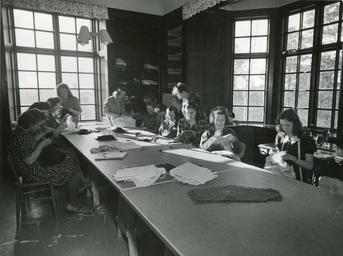 | Keywords: familieforlegninger vårslipp 2012 vårslipp2012 nordmenn i sverige under krigen nordmennisverigeunderkrigen flyktningemottak amerikahjelpen rättvik blackandwhite black and white AMERIKA-HJELPEN TIL NORSKE FLYKTNINGER Av de 100,000 dollars som amerikanske borgere har gitt til beste for norske flyktninger i Sverige, har komiteen for Amerika-hjelpen anvendt et beløp til innkjøp av en vakker villa i Stocksund utenfor Stockholm, som hjem for unge piker. Huset inneholder store salonger, bibliotek, spisesal, hall og forsamlingssal og gir plass til innkvartering av 35 piker med betjening. Bildet viser de unge norske piker som deltagere ved et sykurs. Det holder til i ett av rummene i villaen og ledes av sakkyndige personer. Stockholm 20.3.45 RA/PA-1209/Uc/72/3/S 5650 AMERIKA-HJELPEN TIL NORSKE FLYKTNINGER Av de 100,000 dollars som amerikanske borgere har gitt til beste for norske flyktninger i Sverige, har komiteen for Amerika-hjelpen anvendt et beløp til innkjøp av en vakker villa i Stocksund utenfor Stockholm, som hjem for unge piker. Huset inneholder store salonger, bibliotek, spisesal, hall og forsamlingssal og gir plass til innkvartering av 35 piker med betjening. Bildet viser de unge norske piker som deltagere ved et sykurs. Det holder til i ett av rummene i villaen og ledes av sakkyndige personer. Stockholm 20.3.45 RA/PA-1209/Uc/72/3/S 5650 |