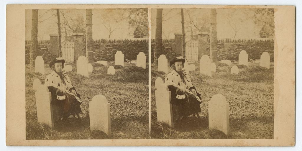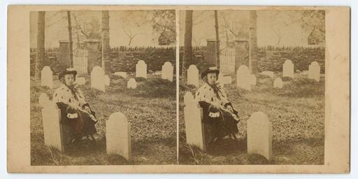 | Keywords: stereographs philadelphia germantown cemeteries children girls winter Shows the family burial grounds at the Stenton House in Germantown, Philadelphia. A little girl in elegant winter attire sits on a chair next to a headstone. Frosted grass surrounds the gravestones and a stone fence protects the cemetery. Accession number: P.2011.47.1291 Shows the family burial grounds at the Stenton House in Germantown, Philadelphia. A little girl in elegant winter attire sits on a chair next to a headstone. Frosted grass surrounds the gravestones and a stone fence protects the cemetery. Accession number: P.2011.47.1291 |