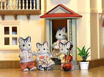 Keywords: family cat toy house violin stroll kids happiness twins dad mom kittens