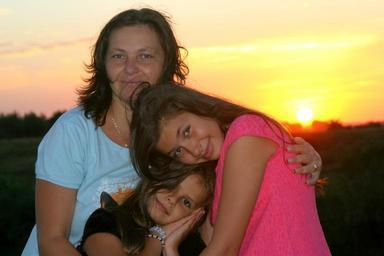 Keywords: family mom daughter sunset hug sun smile
