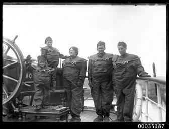 | Keywords: wear clothes suit ship deck board safety dress mount stewart mountstewart blackandwhite monochrome photo border black and white This photo is part of the Australian National Maritime Museum’s Samuel J. Hood Studio collection. Sam Hood (1872-1953) was a Sydney photographer with a passion for ships. His 60-year career spanned the romantic age of sail and two world wars. The photos in the collection were taken mainly in Sydney and Newcastle during the first half of the 20th century. The ANMM undertakes research and accepts public comments that enhance the information we hold about images in our collection. This record has been updated accordingly. Photographer: Samuel J. Hood Studio Collection Object no. 00035387 This photo is part of the Australian National Maritime Museum’s Samuel J. Hood Studio collection. Sam Hood (1872-1953) was a Sydney photographer with a passion for ships. His 60-year career spanned the romantic age of sail and two world wars. The photos in the collection were taken mainly in Sydney and Newcastle during the first half of the 20th century. The ANMM undertakes research and accepts public comments that enhance the information we hold about images in our collection. This record has been updated accordingly. Photographer: Samuel J. Hood Studio Collection Object no. 00035387 |