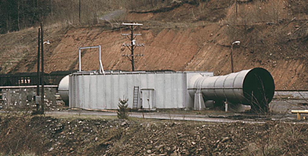 | Keywords: Fan, Virginia Coal Mine Ventillation.png LARGE FAN EQUIPMENT USED TO BLOW FRESH AIR INTO VIRGINIA-POCAHONTAS COAL COMPANY MINE 2 NEAR RICHLANDS VIRGINIA IT TAKES A TREMENDOUS AMOUNT OF POWER TO FORCE THE AIR INTO ALL THE TUNNELS OF THE MINE IT IS WINDY IN THE MAIN SHAFTS AS THE AIR PASSES BY ON ITS WAY TO THE MANY TUNNELS 04/1974 Image created by the Environmental Protection Agency http //media nara gov/media/images/15/9/15-0830a gif Source PD-USGov Ventilation fans Mine ventilation Mining in Virginia |