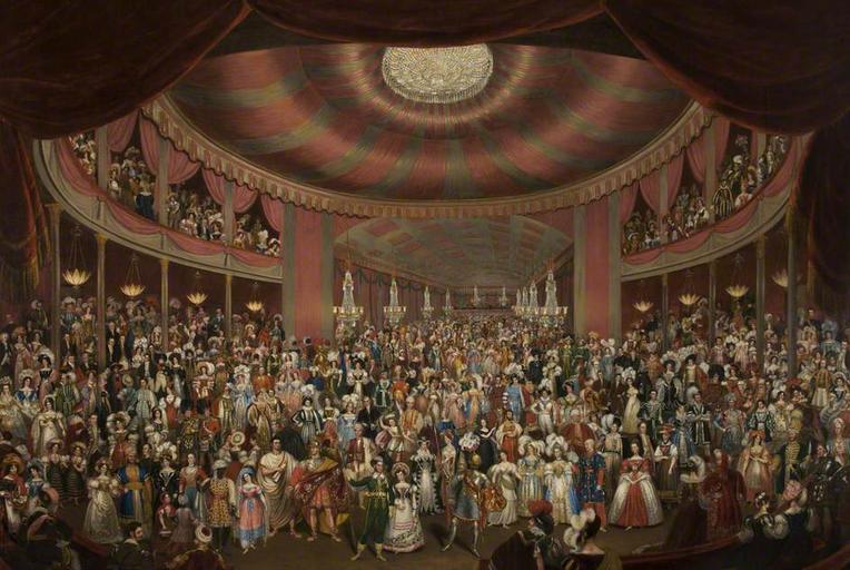 | Keywords: Fancy Dress Ball Perigal.jpg Artwork Arthur Perigal the Elder circa 1784 “1847 en A Fancy Dress Ball Manchester; the ball was held at the close of the Manchester music festival of 1828 The picture shows 400 guests 1828 oil canvas cm 221 305 Salford Museum and Art Gallery accession number 1852-1 object history gift from H B Peacock Esq 1852 credit line exhibition history http //www bbc co uk/arts/yourpaintings/paintings/a-fancy-dress-ball-manchester-165474 BBC Your Paintings PD-old-100 1828 paintings Costume balls History of the City of Manchester Images from BBC Your Paintings Costume Parties |