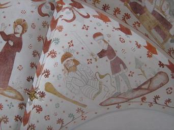 Keywords: Fanefjord David Goliath.JPG en Fanefjord Church Møn Denmark Fresco of David and Goliath own Ipigott 2009-09 Frescos in Fanefjord Church David and Goliath