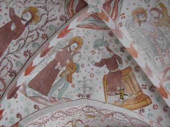 Keywords: Fanefjord Jesus high priest.JPG en Fanefjord Church Møn Denmark Fresco of Jesus before high priest own Ipigott 2009-09-09 Frescos of the Passion of Christ Møn Frescos in Fanefjord Church