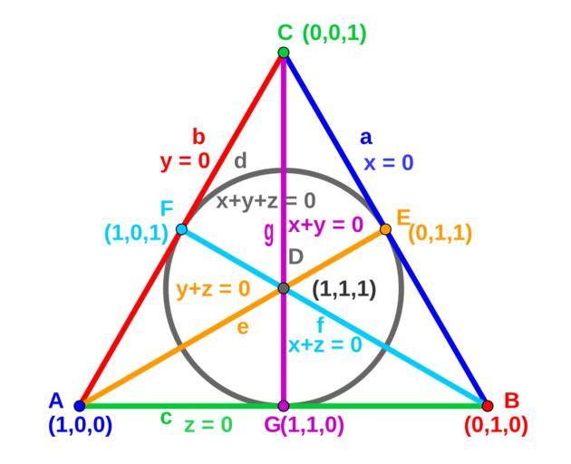 Keywords: Fano-coord.svg fr Plan de Fano avec coordonnées coloriage par dualité geogebra + inkscape + scour own Proz Cc-zero Fano plane