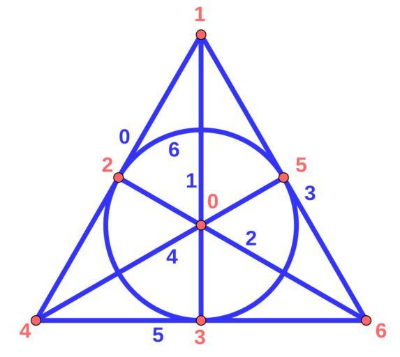Keywords: Fano num.svg en Fano plane see File Heawood_num svg own from Coxeter http //www ams org/journals/bull/1950-56-05/S0002-9904-1950-09407-5/ Proz Cc-zero Fano plane Graphs with labelled edges and vertices