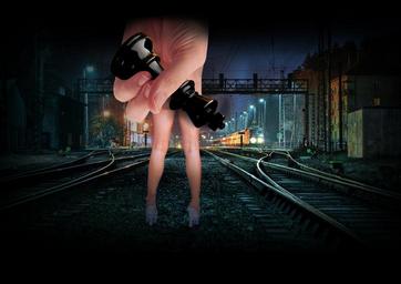 Keywords: fantasy legs girl dark background illustration mystery rails station night figure hand fingers