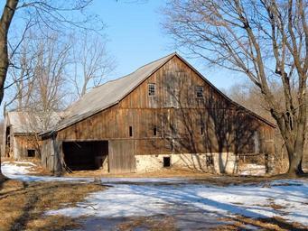 Keywords: farm barn rural rustic country countryside winter snow ice nature outside sky clouds