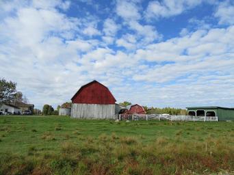 Keywords: farm country rural pasture field weathered wooden farmland structure grass red barn