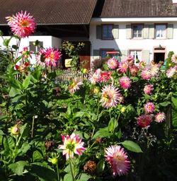 Keywords: farm dahlias rural flowers nature pink flower garden flora flower star cottage garden blossom bloom plant