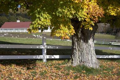 Keywords: farm fence tree autumn leaves foliage colorful landscape grass field country farming meadow barn countryside land wooden