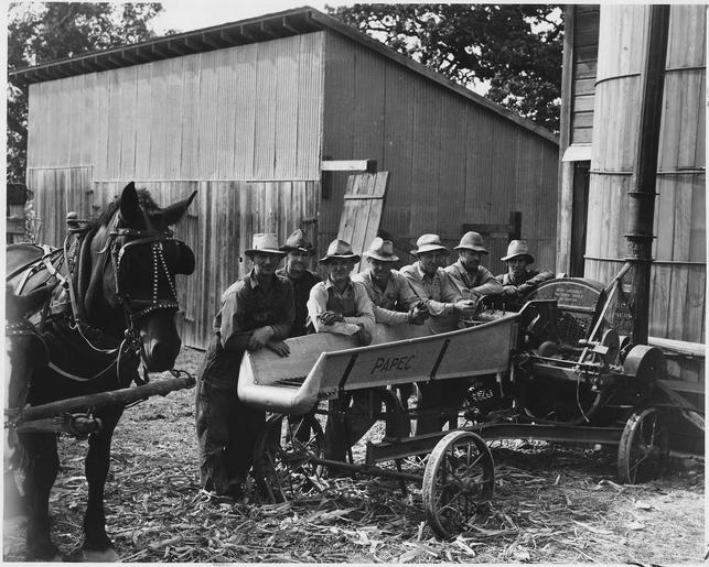 | Keywords: Farm Security Administration, Seven of eight farmers shown with their cooperativelyowned ensillage cutter on the... - NARA - 195847.tif Scope and content General notes 195847 Local identifier Roosevelt Franklin D Franklin Delano 1882-1945 Franklin D Roosevelt Library NLFDR 4079 Albany Post Road Hyde Park NY 12538-1999 ca 10/1939 Record group Collection FDR-PHOCO Franklin D Roosevelt Library Public Domain Photographs 1882 - 1962 Record group ARC 1184 Franklin D Roosevelt Library Public Domain Photographs compiled 1882 - 1962 Series ARC 195301 File unit File unit ARC Variant control numbers NAIL Control Number NLR-PHOCO-A-53227 545 yes Other versions NARA-cooperation PD-USGov Farm Security Administration |