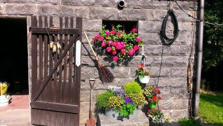 Keywords: farmhouse barn stall chicken coop door flowers horse halter decoration