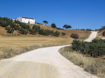Keywords: farmhouse bed and breakfast path olive trees trail landscape trees nature blue sky sky oaks cereal fields