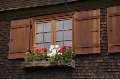 Keywords: farmhouse window geranium shutters wood woods allgäu old building facade floral decorations wall still life rustic home