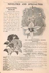 | Keywords: Farquhar's catalogue of seeds 1901 (15961032884).jpg R Gr J FARCUHAR COJS SEED CATALOGUE <br> NOVELTIES AND SPECIALTIES <br> ACIDANTHERA <br> BICOLOR <br> A valuable new bulbous flowering <br> plant for greenhouse or open-ground <br> cultivation Each flower stalk pro- <br> duces from four to eight widely ex- <br> panded very fragrant flowers of creamy <br> white color with broad violet-maroon <br> blotches The flowers are of very <br> lasting character and being borne on <br> long stems are most excellent for <br> bouquets and table decorations The <br> bulbs should be treated in the same <br> manner as Gladioli both for forcing <br> and open-ground cultivation Each <br> 25 cents <br> <br> m <br> DOUBLE-FLOWERED BEDDING BEGONI <br> ACIDANTHERA BICOLOR <br> NEW DOUBLE-FLOWERED BEDDING <br> BEGONIAS <br> These have the habit of the single Begonia Vernon now <br> very extensively used in carpet and ribbon bedding The flow- <br> ers being quite double they are much superior for massing and <br> are of much longer duration Each 25 the set of three <br> varieties 60' <br> Boule de Neige Foliage light green flowers pure white <br> sometimes lightly tinted with pink light yellow stamens ; <br> a gem <br> iNancy Foliage deep green flowers very double clear light <br> pink ; stamens yellow <br> Triomphe de Lorraine Foliage deep green ; flowers dark <br> scarlet with deep yellow stamens ; large and very double <br> SINGLE BEDDING BEGONIAS <br> Erfordia White Dwarf variety with small white flowers <br> borne in great profusion ; an excellent sort for design <br> bedding <br> Each 25 cents <br> Erfordia Pink Similar to the preceding except the flowers which are blush pink Each 25 cents <br> Goliath A magnificent Begonia of the Semperflore7is type with luxurious leaves and large apple-blossom flowers ; <br> one of the best of the recent French hybrids Each 25 cents <br> Mammoth Similar in habit to Goliath but having iridescent deep pink flowers of large size great substance <br> and beauty Each 25 cents <br> Profusion This is of the Fuchsioides type with large foliage and as its name indicates a profusion of delicate <br> shell-pink flowers Each 25 cents <br> Vesuvius The finest of the Fuchsioides varieties with large leaves and numerous deep red flowers ; a fine new <br> sort either for winter blooming or summer bedding Each 25 cents <br> Rex Varieties Large bronze-green and silvery leaves usually red on the under side ; very handsome Kach <br> 20 cents; per doz 2 00 Larger plants 50 cents to 1 00 each <br> Bouvardia Elegant shrubby plants for autumn and winter blooming of great value for cut flowers <br> Alfred Neuner Double waxy white flowars in large corymbs <br> Davidsoni Large flowers; single blush white <br> Elegans Single Scarlet President Garfield Double flesh-pink <br> Rosea flultiflora Clear salmon-rose Plants each 15 per doz 1 50 42283985 133538 66475 Text http //www biodiversitylibrary org/page/42283985 1901 10 5962/bhl title 66475 Henry G Gilbert Nursery and Seed Trade Catalog Collection ; R J Farquhar Company NameFound Acidanthera bicolor NameConfirmed Acidanthera bicolor Hochst EOLID 5869827 NameBankID 5878953 NameFound Begonia NameConfirmed Begonia aff palmata GBG 002-089-95 EOLID 11904651 NameFound Bouvardia NameConfirmed Bouvardia Salisb EOLID 29281 NameFound Elegans NameConfirmed Elegans NameBankID 5116399 NameFound Rosea flultiflora Biodiversity Heritage Library Farquhar's catalogue of seeds 1901 plants bulbs fertilizers tools sundries / Garden Stories Bedding plants Boston Catalogs Equipment and supplies Flowers Gardening Massachusetts Nurseries Horticulture Nursery stock Perennials R J Farquhar Company U S Department of Agriculture National Agricultural Library bhl page 42283985 dc identifier http //biodiversitylibrary org/page/42283985 bhlGardenStories Bulbs Plants Acidanthera Begonias BHLinbloom nurseries horticulture r j farquhar company u s department of agriculture national agricultural library bhlgardenstories bulbs plants bhlinbloom Information field Flickr posted date ISOdate 2015-02-19 CC-BY-2 0 BioDivLibrary https //flickr com/photos/61021753 N02/15961032884 2015-08-24 02 53 03 cc-by-2 0 PD-old-70-1923 Bedding plants Farquhar's catalogue of seeds 1901 Photos uploaded from Flickr by Fæ using a script |
