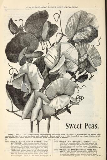 | Keywords: Farquhar's catalogue of seeds 1901 (16583215935).jpg 12 <br> R f J FARQUHAR -CO 'S SEED CATALOGUE <br> Sweet Peas <br> SWEET PEAS The extraordinary improvement resulting from the work of hybridizers on Sweet Peas <br> during the past few years has been unprecedented Colors quite new to the Sweet Pea have been obtained while <br> the flowers have been improved in size and form and increased in number <br> No Pkt <br> 7600 FARQUHAR'S COLUHBIAN HYBRIDS FIN- <br> EST MIXED This mixture contains over fifty of <br> the finest large-flowering varieties and none of the in- <br> ferior sorts The balance of color is carefully studied <br> and the proportion of each variety weighed out before <br> being mixed Most of them have long stems each <br> carrying three or four flowers of the finest substance <br> and superb colors The more they are picked the <br> more the flowers come and the better for the vines <br> Pound post paid 1 00; 5£ lb 30; ounce 15 large pkt 10 <br> No Pkt <br> 7502 FARQUHAR'S BOUQUET OEMS Collec- <br> tion of ten splendid colors We have selected the <br> finest sorts in existence for this collection ; all large <br> flowered fragrant and with long stems The packets <br> are of good size ¢ ¢ Per collection 40 <br> 7505 farquhar;s international prize mix- <br> ture This mixture includes all the leading varie- <br> ties as well as the new sorts of established merit It <br> is mixed from named sorts and contains the most beauti- <br> and diversified colors pound 75; J4 lb 25 ounce 10 05 42284071 133538 66475 Text http //www biodiversitylibrary org/page/42284071 1901 10 5962/bhl title 66475 Henry G Gilbert Nursery and Seed Trade Catalog Collection ; R J Farquhar Company Biodiversity Heritage Library Farquhar's catalogue of seeds 1901 plants bulbs fertilizers tools sundries / Garden Stories Bedding plants Boston Catalogs Climbing plants Equipment and supplies Flowers Gardening Massachusetts Nurseries Horticulture Nursery stock Perennials R J Farquhar Company Seeds Trees Vegetables U S Department of Agriculture National Agricultural Library bhl page 42284071 dc identifier http //biodiversitylibrary org/page/42284071 bhlGardenStories Sweet Peas BHLinbloom nurseries horticulture r j farquhar company u s department of agriculture national agricultural library bhlgardenstories sweet peas bhlinbloom Information field Flickr posted date ISOdate 2015-02-19 CC-BY-2 0 BioDivLibrary https //flickr com/photos/61021753 N02/16583215935 2015-08-24 02 51 23 cc-by-2 0 PD-old-70-1923 Bedding plants Climbing plants Farquhar's catalogue of seeds 1901 Photos uploaded from Flickr by Fæ using a script |