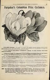 | Keywords: Farquhar's catalogue of seeds 1901 (16397341089).jpg R -/ FARQUHAR COfS SEED CATALOGUE <br> 43 <br> Farquhar's Columbian Prize Cyclamen <br> CYCLAMEN Persictim Our strains of Cyclamen have gained a national reputation and are freely- <br> acknowledged to be the finest in the country The seeds which are grown for us by specialists in Europe are <br> all of the giant-flowering type and of the most improved varieties <br> At the WORLD'S COLUMBIAN EXPOSITION Chicago we were awarded both Grand <br> Medal and Diploma <br> Garden and Forest in commenting on the Exhibition of Cyclamen Plants at the World's <br> Fair at which specialists from all over the world had exhibits in competition says <br> The exhibit of R J Farquhar 6° Company Boston is one of the largest and makes the best impression as <br> a whole Their Mont Blanc Cyclamen is the finest white in the Exhibition if not the best of any strain <br> The contrast was great between the small-flowering type of other exhibitors and the large flowers in the exhibition <br> of R 5r»y Farquhar 6° Company <br> Messrs R J Farquhar S Co <br> Gentlemen ” Your Cyclamen are the finest I have ever grown <br> ranging from pure white to dark crimson <br> The blooms are so large and borne on such stout steins that I have used tJie n most satisfactorily for cutting purposes Every one who <br> sees them pronounces them the best ever seen Yours very truly C f IV Gardener to Mrs f S <br> Beach Bluff Mass Feb 20 1899 <br> Every seed germinated ; the plants are handsome with flowers <br> Messrs R f Farquhar 5r Co Maiden Mass Dec 2 1899 <br> Gentlemen ” You will be pleased to learn that the Cyclamen seeds I had from you last year have turned out admirably The plants are <br> now in full bloom and are truly grand The flowers are of enormous size splendid substance and their erect stout stems fwld them well <br> above the leaves I have never seen a finer strain Yours very truly D F Roy Supt Estate of Hon E S Converse <br> 3090 <br> GRANDIFLORUM FARQUHAR'S COLUMBIAN PRIZE The flowers are of large <br> size and fine form with broad massive petals and embrace all the finest colors <br> ranging from pure white to lilac pink rose and deep crimson as well as the <br> best variegated forms Finest mixed 50 <br> CYCLAMEN CONTINUED ON NEXT PAGE 42284042 133538 66475 Text http //www biodiversitylibrary org/page/42284042 1901 10 5962/bhl title 66475 Henry G Gilbert Nursery and Seed Trade Catalog Collection ; R J Farquhar Company Biodiversity Heritage Library Farquhar's catalogue of seeds 1901 plants bulbs fertilizers tools sundries / Garden Stories Bedding plants Boston Catalogs Climbing plants Flowers Gardening Massachusetts Nurseries Horticulture Nursery stock Perennials R J Farquhar Company Seeds U S Department of Agriculture National Agricultural Library bhl page 42284042 dc identifier http //biodiversitylibrary org/page/42284042 bhlGardenStories Cyclamen BHLinbloom nurseries horticulture r j farquhar company u s department of agriculture national agricultural library bhlgardenstories bhlinbloom Information field Flickr posted date ISOdate 2015-02-19 CC-BY-2 0 BioDivLibrary https //flickr com/photos/61021753 N02/16397341089 2015-08-24 02 52 33 cc-by-2 0 PD-old-70-1923 Bedding plants Climbing plants Farquhar's catalogue of seeds 1901 Photos uploaded from Flickr by Fæ using a script |