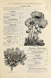 | Keywords: Farquhar's mid-summer catalogue (16991398271).jpg R J FARQUHAR CO 'S MID-SUMMER CATALOGUE <br> Canterbury Bells <br> Farquhar's Prize Mixed Large splendid colors <br> Single Blue Rose and White Each <br> Single Cup-and-Saucer Calycanihema Mixed <br> Double Mixed <br> Oz Pkt <br> 1 75 10 <br> 40 05 <br> ˘75 -05 <br> i oo 05 <br> Calliopsis <br> Oz Pkt <br> 50 05 <br> Grandiflora The best hardy sort <br> Daisies <br> Double Mixed 4 C0 10 <br> Double Rose 5 00 10 <br> Double White 4 50 10 <br> Forget-Me-Not <br> Eliza Fonrobert Blue; the best for <br> cutting 1 00 10 <br> Victoria Bright blue; compact and <br> very floriferous ˘ <br> Hollyhocks <br> Chater's Prize Double Mixed <br> Chater's Prize Double Mixed <br> Collection 12 Varieties <br> Double English Finest Mixed <br> Double English Crimson Pink <br> Purple W hite and Yellow Ea <br> Double English Collection 12 <br> Varieties <br> Single-Flowered Mixed <br> Allegheny Fringed single and semi- <br> double 1 25 <br> Larkspur Ferenmal <br> Farquhar's Selected Hybrids 2 00 <br> FoRMOSUM Dark blue 75 <br> Ccelestinum Sky blue 3 50 <br> Poppies Perennial <br> Iceland Downie's Finest Mixed 1 25 <br> Iceland Orange-Scarlet Yel- <br> low and White Each 1 00 <br> Oriental i oo <br> - Hybrids 2 00 <br> 1 50 <br> 2 00 <br> i oo <br> 1 50 <br> i oo <br> Oriental Poppy <br> Polyanthus Primula elatior <br> Farquhar's Giant Fancy 5 00 <br> Gold Laced Flowers edged with yellow 2 00 <br> Pyrethrum Roseum <br> Double Hybrids Finest Mixed <br> Single Hybrids Finest Mixed <br> Scabiosa <br> Caucasica Large light -blue flowers <br> Sweet Williams <br> 15 <br> 10 <br> ˘IS <br> 10 <br> 20 <br> – 50 05 <br> – 75 -lo <br> – 75 -lo <br> ˘25 <br> 00 <br> ˘05 <br> 10 <br> Scabiosa Caucasica <br> Single Finest Mixed <br> Double Finest Mixed <br> Auricula-Eyed Mixed Colors <br> Wallflower <br> Single Finest Mixed <br> Double Branching Mixed <br> Wallflower requires some protection <br> during winter <br> Other Hardy Perennial Plants <br> Our General Spring Catalogue enumerates many <br> Hardy Perennials of which good flowering plants <br> may be had for next year by sowing seeds now The <br> Catalogue will be mailed on application 43902027 149998 78553 Page 3 Text http //www biodiversitylibrary org/page/43902027 1902 10 5962/bhl title 78553 Henry G Gilbert Nursery and Seed Trade Catalog Collection ; R J Farquhar Company NameFound Calliopsis NameConfirmed Calliopsis EOLID 2748143 NameBankID 4099619 NameFound Calycanihema NameFound Caucasica NameConfirmed Caucasica EOLID 9101655 NameBankID 4105838 NameFound Ccelestinum NameFound Polyanthus NameConfirmed Polyanthus NameBankID 3485302 NameFound Primula elatior NameConfirmed Primula elatior EOLID 483957 NameBankID 2669987 NameFound Pyrethrum NameConfirmed Pyrethrum Medik EOLID 2879753 NameBankID 8777274 NameFound Scabiosa NameConfirmed Scabiosa 'Simon Greaves' EOLID 49101 NameFound Victoria NameConfirmed Victoria EOLID 34123 NameBankID 897688 Biodiversity Heritage Library Farquhar's mid-summer catalogue 1902 Bedding plants Boston Catalogs Equipment and supplies Flowers Gardening Massachusetts Nurseries Horticulture Nursery stock Perennials R J Farquhar Company Seeds U S Department of Agriculture National Agricultural Library bhl page 43902027 dc identifier http //biodiversitylibrary org/page/43902027 bhlGardenStories Oriental Poppy Scabiosa nurseries horticulture r j farquhar company u s department of agriculture national agricultural library bhlgardenstories oriental poppy Information field Flickr posted date ISOdate 2015-03-31 CC-BY-2 0 BioDivLibrary https //flickr com/photos/61021753 N02/16991398271 2015-08-23 22 06 50 cc-by-2 0 PD-old-70-1923 Farquhar's mid-summer catalogue Photos uploaded from Flickr by Fæ using a script |
