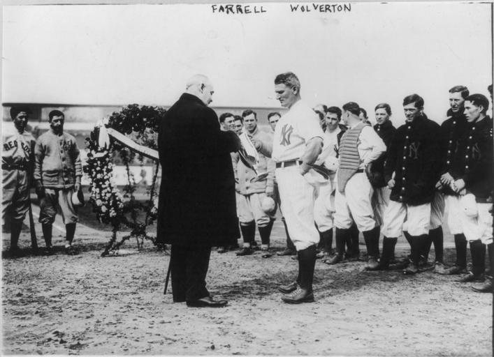 MAKE A MEME View Large Image Farrell Wolverton Highlanders.jpg New York Highlanders team president Frank Farrell presenting a loving cup to Highlanders manager Harry Wolverton while the Highlanders now known as the Yankees and Boston Red Sox look on cph 3b24500 ...