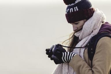 Keywords: fashion person woman camera girl photographer winter whitespace hat taking photos scarf