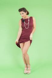 Keywords: fashion pinup girl dress women parade model dark hair garment bella beauty female brown textile design