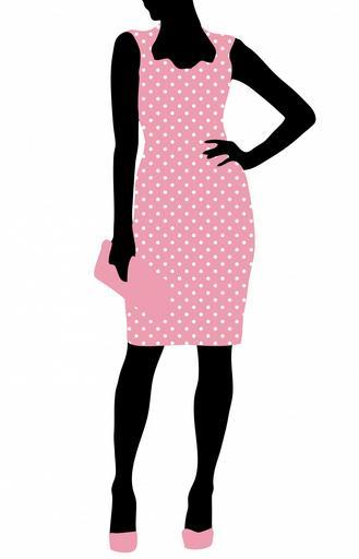 Keywords: woman female girl fashion black silhouette pink white polka dots dots spots dress clipart illustration