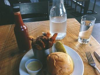 Keywords: fast food snack burger plate meal restaurant diner dinner food lunch unhealthy nutrition hamburger tasty junk food