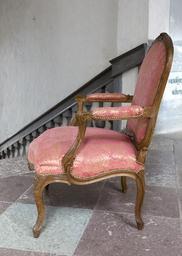| Keywords: Fåtölj - Skoklosters slott - 103910.tif LSH artwork H Amand möbelsnickare sv Svängda ben med käl och bandomlindade vulstknippen som direkt övergår i sargen på samma sätt dekorerad ram till stoppad konturerad rygg Mitt på sargens framsida och på ryggens överstycke skulpterade rosor och rocailler <br/>Utåtsvängda armstöd med stoppning Sits och rygg samt armstödens stoppning klädda med rött-gulmönstrat fibertyg bomull och obearbetad fiber av manillahampa <br/>Klädseln spikad med mässingstännlikor <br/>Omkring 1700-talets mitt <br/>Tygklädseln från ca 1840 <br/>Stämplade på ena ryggstolpens baksida ME H AMAND menusier ebeniste Paris <br/>Märkta <br/>1775 1 På sargens bakre insida J med blyerts <br/>1775 2 På sargens främre insida I samt oläslig skrift med blyerts på vänstra och högra insidan xe <br/>1775 3 Märkt s 1775 2 men Ret på vänstra insidan <br/>1775 4 På sargens främre insida I på dess vänstra insida + med blyerts På sidornas insida inristat romb <br/>1775 5 På sargens främre insida I med blyerts <br/>1775 6 På sargens främre insida x med svart färg tre ggr På sidornas insida 3 med blyerts På bakre insidan L original caption Fåtölj<br/> Nyckelord Föremålsbild Stol ca 1750 size mm 760 700 1020 SKO M E place of origin original filename sm_dig11827 23029 inventory number SKO 1775 103910 CC-BY-SA Jenny Bergensten <gallery caption Different images of same object > File Undersidan av stol - Skoklosters slott - 103893 tif File Fåtölj - Skoklosters slott - 103909 tif File Fåtölj 1750 cirka - Skoklosters slott - 103912 tif File Länstol 1750 cirka - Skoklosters slott - 103891 tif File Fåtölj undersidan 1750 cirka - Skoklosters slott - 103913 tif File Undersidan av stol - Skoklosters slott - 103896 tif File Möbeltyg 1840 cirka - Skoklosters slott - 103898 tif File Undersidan av sits - Skoklosters slott - 103917 tif File Möbeltyg 1840 cirka - Skoklosters slott - 103899 tif File Länstol - Skoklosters slott - 103890 tif File Undersidan av stol - Skoklosters slott - 103897 tif File Länstol - Skoklosters slott - 103888 tif File Fåtölj undersidan - Skoklosters slott - 103915 tif File Undersidan av stol - Skoklosters slott - 103895 tif File Länstol - Skoklosters slott - 103889 tif File Fåtölj från sidan 1750 cirka - Skoklosters slott - 103911 tif File Stol med randigt möbelöverdrag - Skoklosters slott - 98198 tif File Underdel av länstol 1750 cirka - Skoklosters slott - 103892 tif File Undersidan av stol - Skoklosters slott - 103894 tif File Fåtölj undersidan - Skoklosters slott - 103916 tif File Valnötsstol med mönstrat fibertyg bomull och obearbetad fiber av manillahampa från 1750 - Skoklosters slott - 98199 tif File Fåtölj undersidan 1750 cirka - Skoklosters slott - 103914 tif </gallery> Chairs Jenny Bergensten Media contributed by LSH unmatched creator Media contributed by LSH 2015-11 |
