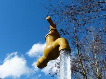 Keywords: faucet water column free standing floating optical deception yellow water water running artwork art object deception water marsh
