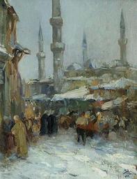 | Keywords: Fausto Zonaro (attr) Istanbul im Winter.jpg Istanbul im Winter verschneiter Markt vor der Moschee painting XXI monogram/date lower right 31 x 24 5 cm http //www auktion-bergmann de Auktionshaus Bergmann 1921 city sight attributed to PD-old-auto 1929 Images from Auktionshaus Bergmann Fausto Zonaro Paintings of Istanbul Winter in cityscape paintings 1921 paintings |