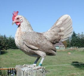 Keywords: FawnSilverDutch.jpg en A fawn silver Dutch bantam hen Own GoldenSebright 2004-10-03 Hens Bantam chicken breeds