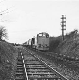 Keywords: general motors generalmotors gm diesel locomotive diesellocomotive locomotive loco b126 nesbitt junction nesbittjunction meath ireland leinster railways railroads trains tracks sleepers coras iompair éireann corasiompairéireann c.i.é. cié friday 24 february 1961 1960s sixties james p. o'dea jamespodea national library of ireland nationallibraryofireland o'dea photographic collection odeaphotographiccollection blackandwhite sport vehicle railroad monochrome outdoor train railroad track road black and white Going mad altogether today by adding two photos taken on 24 February. This one is of a new General Motors diesel locomotive on trial at Nesbitt Junction, near Enfield in Meath. Back on 4 January, the Pic of the Day was from 1961 and showed GM diesel locomotive B124 being unloaded from a ship at the North Wall in Dublin. One of our Flickroonies, Flying Snail, requested: "when we get to the 24th of Feb could you upload the following of O'Dea's ref: 23/62, as I think it shows the same locos running bonnet first before it was discontinued for safety reasons following an accident!" However, when I checked the photo, it turned out to be loco B126, not B124. Either way, here it is... Date: Friday, 24 February 1961 NLI Ref.: ODEA 23/62 Going mad altogether today by adding two photos taken on 24 February. This one is of a new General Motors diesel locomotive on trial at Nesbitt Junction, near Enfield in Meath. Back on 4 January, the Pic of the Day was from 1961 and showed GM diesel locomotive B124 being unloaded from a ship at the North Wall in Dublin. One of our Flickroonies, Flying Snail, requested: "when we get to the 24th of Feb could you upload the following of O'Dea's ref: 23/62, as I think it shows the same locos running bonnet first before it was discontinued for safety reasons following an accident!" However, when I checked the photo, it turned out to be loco B126, not B124. Either way, here it is... Date: Friday, 24 February 1961 NLI Ref.: ODEA 23/62