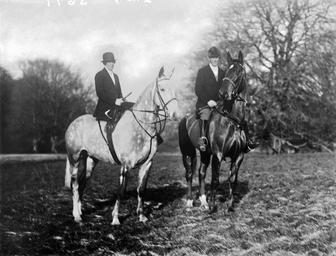 | Keywords: hon. mrs nigel baring honmrsnigelbaring ada sybil roche adasybilroche ada roche adaroche ada baring adabaring edward fitzgibbon edwardfitzgibbon master croom harriers croomharriers croom limerick ireland munster side saddle sidesaddle hunting horses saturday 8 february 1930 a.h. poole ahpoole arthur henri poole arthurhenripoole poole collection poolecollection glass negative glassnegative 1930s thirties horse equus animal animals rider riders gentleman grass meadow lady man trees sky boots islanmore women national library of ireland nationallibraryofireland blackandwhite monochrome outdoor black and white Presenting the Hon. Mrs Nigel Baring and Mr Edward Fitzgibbon of Croom, Co. Limerick. Edward Fitzgibbon was Master of Croom Harriers. We think that Mrs Nigel Baring (née Hon. Ada Sybil Roche) was a daughter of Lord Fermoy. She lived at Croom, Co. Limerick and had a son Desmond, who appears in another photo taken on the same day. Her husband, Nigel Baring, may have had something to do with Baring's Bank and was Master of the Duhallow Foxhounds. Date: Saturday, 8 February 1930 NLI Ref.: P_WP_3677 Presenting the Hon. Mrs Nigel Baring and Mr Edward Fitzgibbon of Croom, Co. Limerick. Edward Fitzgibbon was Master of Croom Harriers. We think that Mrs Nigel Baring (née Hon. Ada Sybil Roche) was a daughter of Lord Fermoy. She lived at Croom, Co. Limerick and had a son Desmond, who appears in another photo taken on the same day. Her husband, Nigel Baring, may have had something to do with Baring's Bank and was Master of the Duhallow Foxhounds. Date: Saturday, 8 February 1930 NLI Ref.: P_WP_3677 |