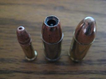 | Keywords: Federal Hydra-Shok 9mm - Top View.jpg Top view of a 9mm Federal Hydra-Shok cartridge P9HS2 To the left is a copper plated hollow-point 22LR also from Federal round and to the right is a Winchester 9mm Full Metal Jacket round USA9MMVP Own 01/12/08 Rjordan1628 Bullets 9 × 19 mm Parabellum 22 LR Comparison of pistol and rifle cartridges |