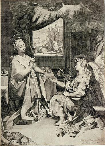 | Keywords: Federico Barocci - The Annunciation.jpg The Annunication Etching and engraving with drypoint 17 1/4 x 12 1/4 in 43 8 x 31 1 cm State ii/ii http //stlouis art museum/emuseum/code/emuseum asp style Browse currentrecord 1 page search profile objects searchdesc 2 1991 quicksearch 2 1991 newvalues 1 newstyle single newcurrentrecord 1 Saint Louis Art Museum official site ca 1585 Federico Barocci PD-old-100 creator Federico Barocci Federico Barocci Engravings of Annunciation 1580s etchings 1580s engravings Prints in the Saint Louis Art Museum Virgin Mary with cat |