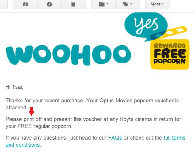 MAKE A MEME View Large Image Thank you for the free popcorn as part of the movie vouchers i bought from you. On 14/6/14 - 12pm ,when i tried to redeem the pop corn from HOYTS melbourne central, i was advise to print the voucher for the popcorn instead of simply showing ...