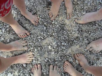 Keywords: feet beach barefoot family pumice