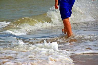 Keywords: feet legs sand water wave go spray barefoot walk splash be ashamed foam fun bathing sea water splashes sand beach summer sun beach go to the waves refreshment