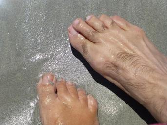 Keywords: feet sand sea ten barefoot man foot woman foot woman man part of the body