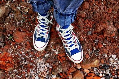 Keywords: feet shoe sneaker all star footwear girl woman fashion lace exercise walking pair standing legs blue red